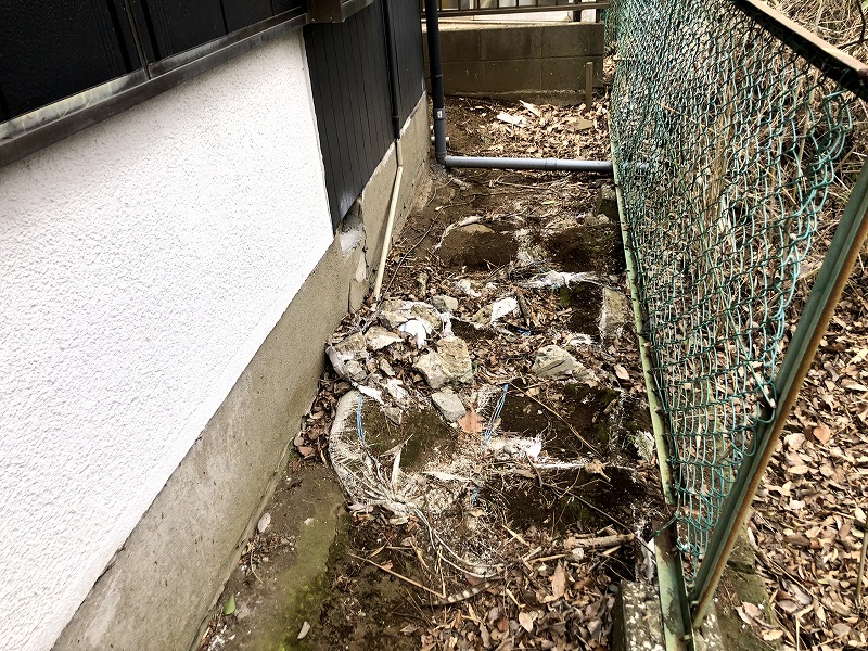 今回の通路は、築古物件あるあるで地面が波打つようにデコボコになっていました。