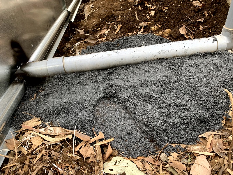砂と山土の組み合わせであれば足で何度か踏み固めるだけでも十分に締まってくれると感じました。