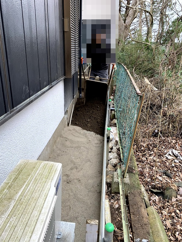 砂は扱いやすく、裏通路の仕上げ材としても使いやすい