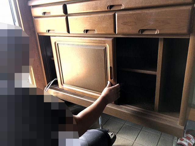 今回は、キッチンで使っていた棚を玄関収納として再利用しているため、