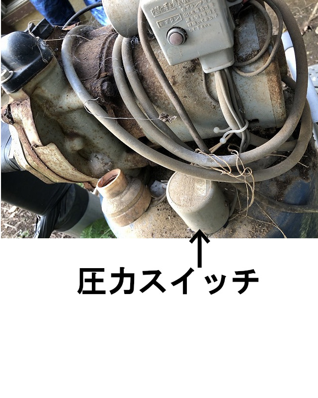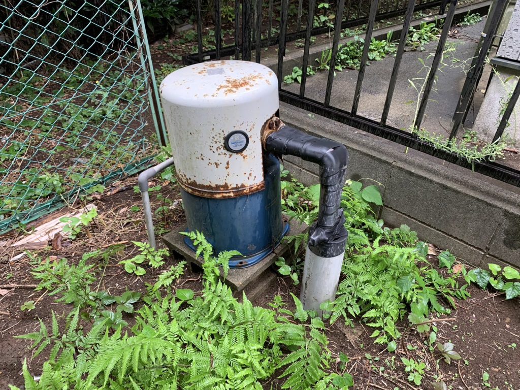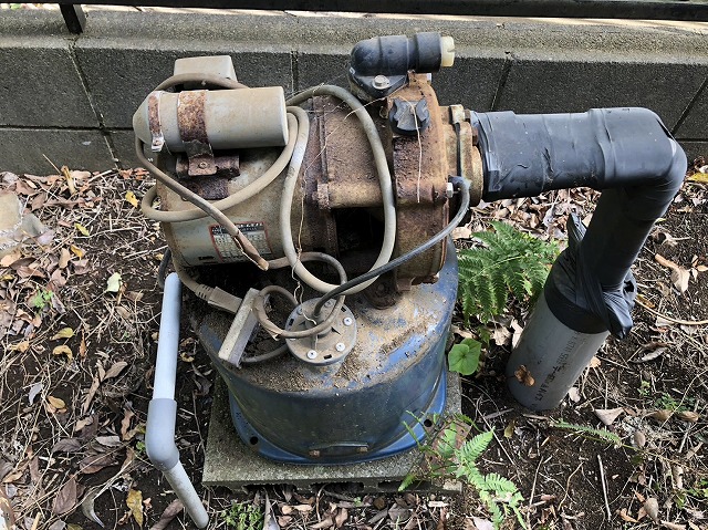 築50年の平屋に設置されていた古いナショナル製の井戸ポンプ。見た目からして「これは交換しかないだろう…」と思えるほど年季が入っています。
