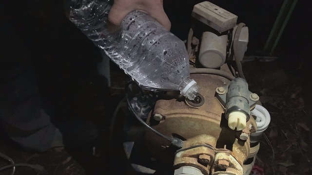いろいろやってたら、呼び水用で用意していた水も少なく……