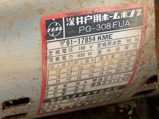 ナショナル PG-308FUA(深井戸用ホームポンプ)について